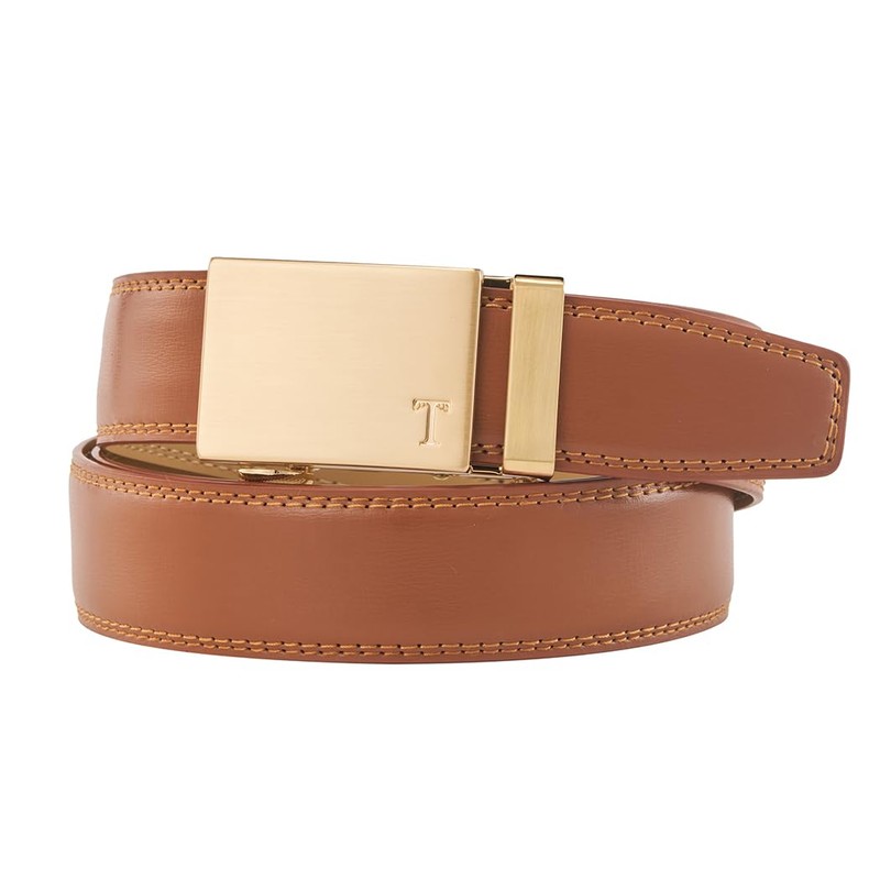 Tonywell Ratchet Belts for Men, Leather Dress Casual Belt, 1 3/8" Adjustable with Comfort Click Buckle (Cognac Brown Belt Gold Buckle, 32" to 45" Waist Adjustable)