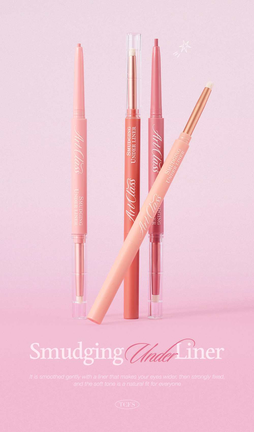 Liner that expands triangular zone under eyes. The subtle colors to apply shade under eyes allows easy expansion of eye size. The 2mm slim cylindrical container perfect for triangular zone and blending brush that softens the line result in easy makeup.