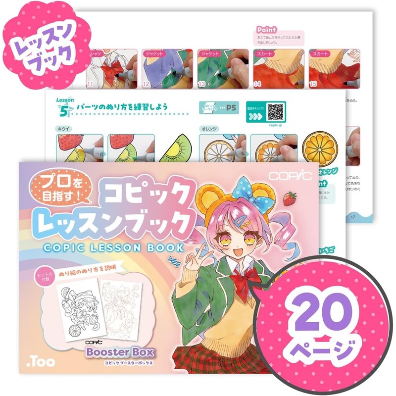 I want to make a great illustration! Introducing a limited edition set that is perfect for those who like that. The number 1 color marker "Copic Sketch", which is known and popular by professional professionals, and the lesson book and work notebook that can be used for basic use. The illustrations of the popular author Kogo who draws adorable characters in soft colors are now available. Packaged in a paper drawer box for easy storage. Learn the fundamentals of the copic and draw a gradual illustration!