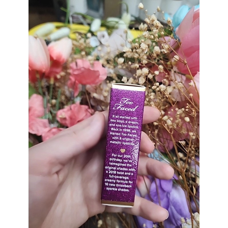 Too Faced 20th Anniversary Metallic Sparkle Lipstick Pixie Stick Purple NIB New!