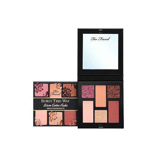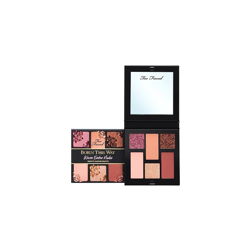 Too Faced Born This Way Natural Nude Mini Eye Shadow Palette What It Is Choose warm or cool shades, whichever looks best on your skin tone! Inspired by the iconic original Born this Way Natural Nudes Eye Shadow Palette, each of these mini palettes of six highly-pigmented modern neutral shades was created to help you look so naturally beautiful, they’ll think you were Born This Way! What You Get 0.15 oz. Natural Nude Mini Eyeshadow Palette Shade Options Warm Nudes Palette Shades: Warm Ember, Cream Puff, Bring The Heat: How to Use Prime eyelid with a pea-size amount of shadow Insurance using a clean fingertip or a flat eye shadow brush. Define the crease with a matte shade using a fluffy blending brush. Place brush tip in the crease starting from outer corner lightly buffing to the inner corner. Layer for color intensity. Apply your choice of eye shadow onto the eyelid using a flat eye shadow brush. For shimmer shades, apply using a clean fingertip to intensify shimmer. Finish with a generous coat of your choice of Better Than Sex Mascara. Imported.
