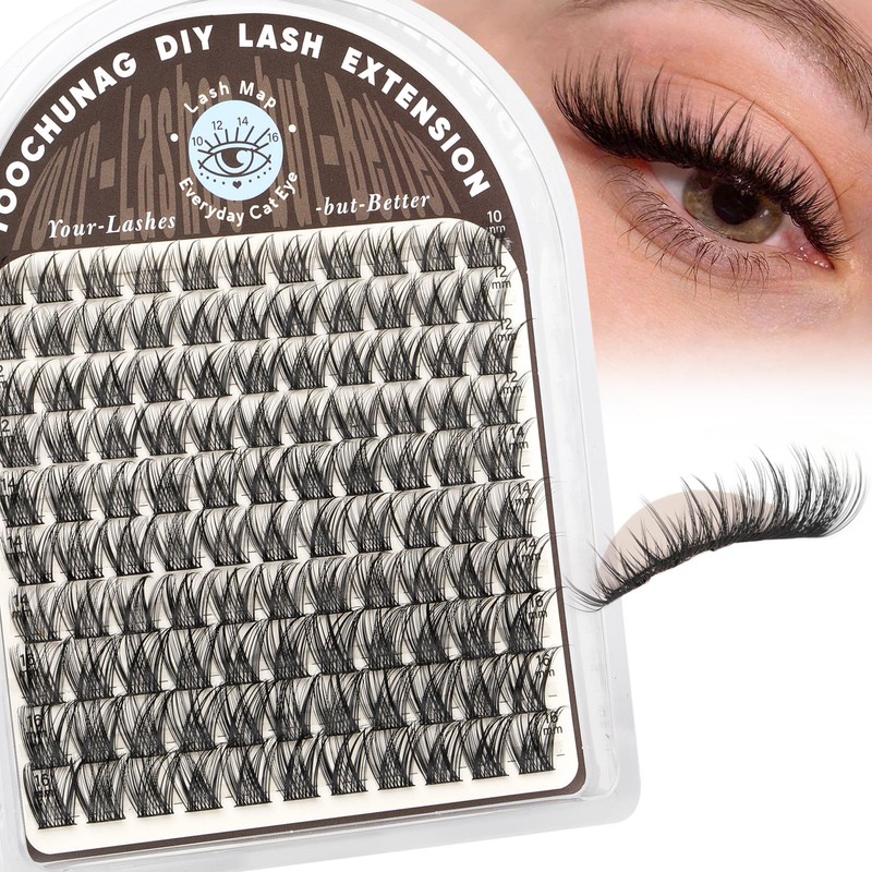 - Design your own eyelash extension: Create your signature look with 3D volume false eyelashes clusters, featuring 4 versatile lengths (10-16mm) perfect for work, study, or play. For a daily cat-eye look, DIY with just four lash clusters: 10mm, 12mm, 14mm, and 16mm.