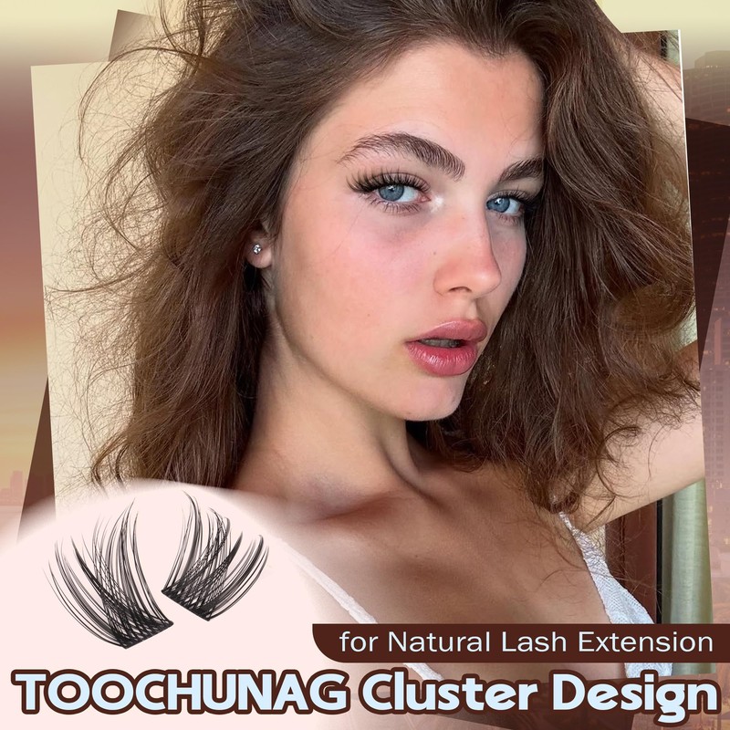 TOOCHUNAG Lash Clusters Natural Wispy Eyelash Clusters C Curly DIY Eyelashes Extensions 10-16MM Pestañas Postizas Naturales Thin Band Individual Cluster Lashes