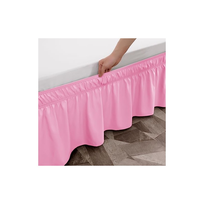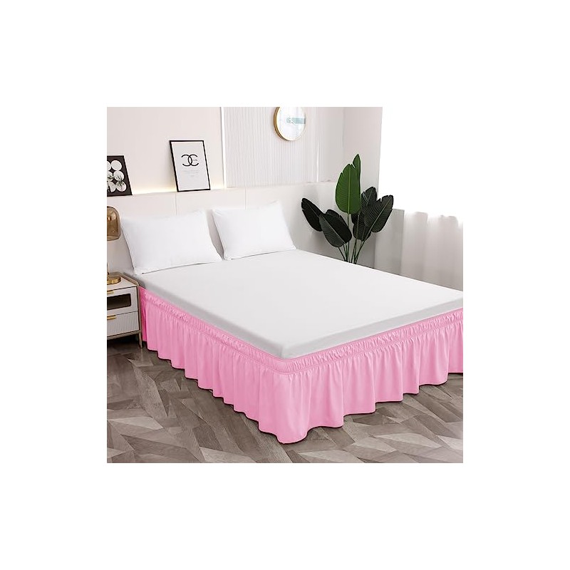 Toodou Queen Pink Bed Skirt – Hotel-Quality Ruffles for Queen Beds with 16" Drop – Elastic Wrap Around Dust Ruffle Queen Bedskirt
