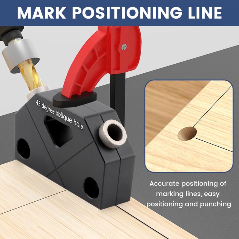 【45 DEGREE ANGLED】The 45-degree punching assistant accurately locates the marking line and easily positions and punches, which is convenient and fast, saving time. Join two wood pieces together, creating a strong joint.