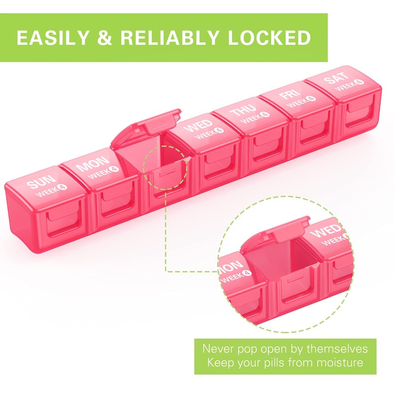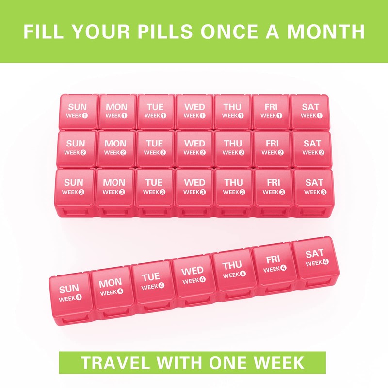 - Store 4 Weeks' Medicine: Our pill box has four medicine pill organziers, can keep organized your 1 month's medicine and will be on track for maintaining your AM/PM medication regimen. So it's very useful to help you plan a week pill in advance