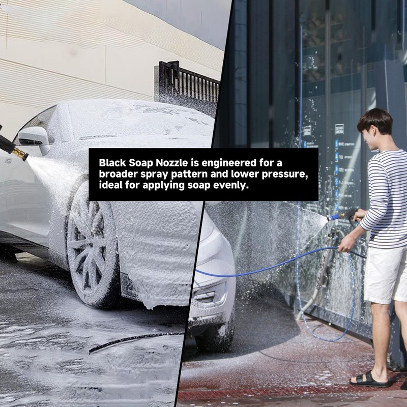 - Wide Applications: The 65° black power washer nozzle is engineered for broader spray angle and lower pressure, suitable for spraying soaps as well as watering plants