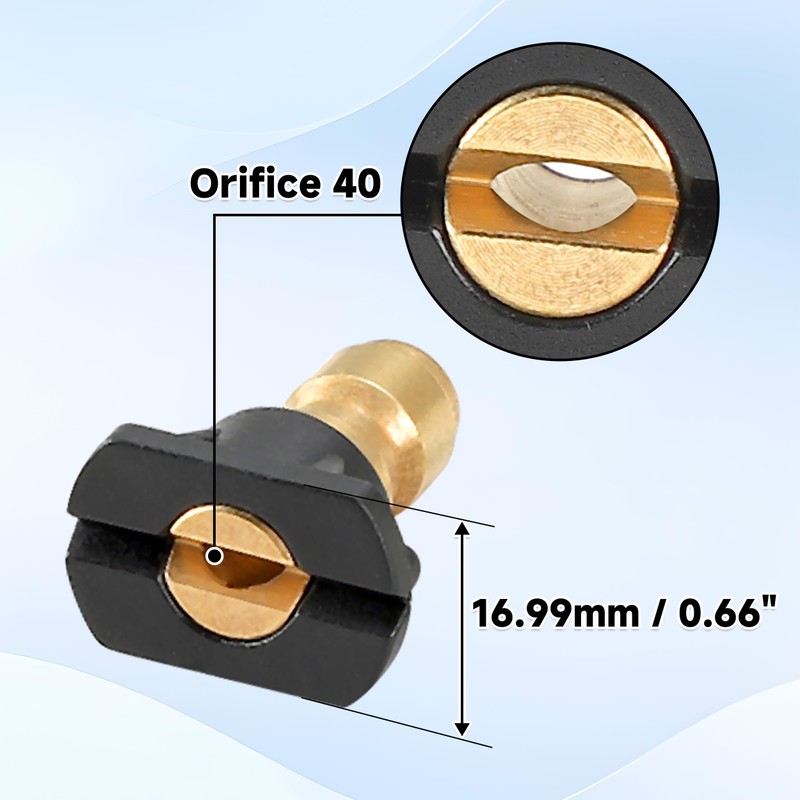 - High Performance: The orifice size of these pressure washer nozzles is 40. Max working pressure is up to 4000 PSI, which fits most pressure washers