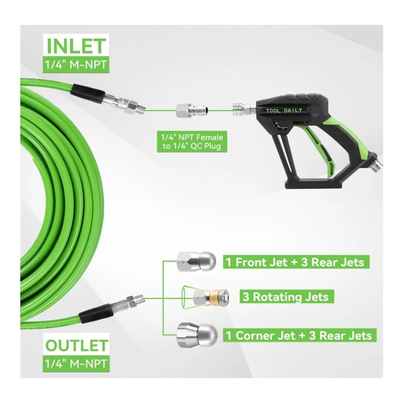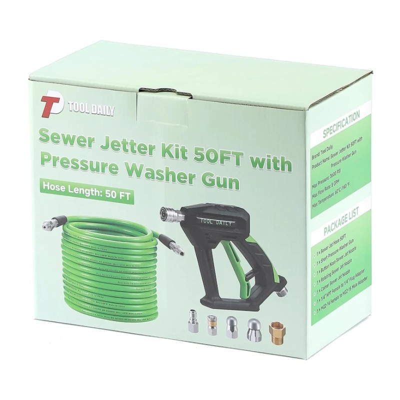 Tool Daily Sewer Jetter Kit for Pressure Washer 50 FT, Short Power Washer Gun