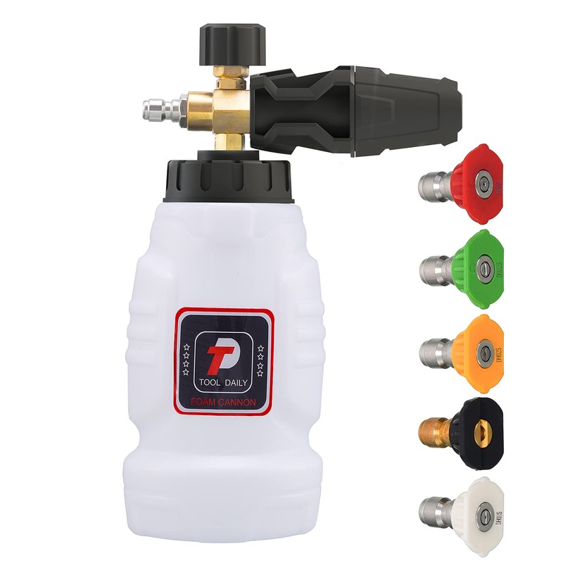 Tool Daily Tool Daily Foam Cannon, 1/4 Inch Quick Connect, Power Washer Foam Cannon with 5 Pressure Washer Nozzles,1 Liter