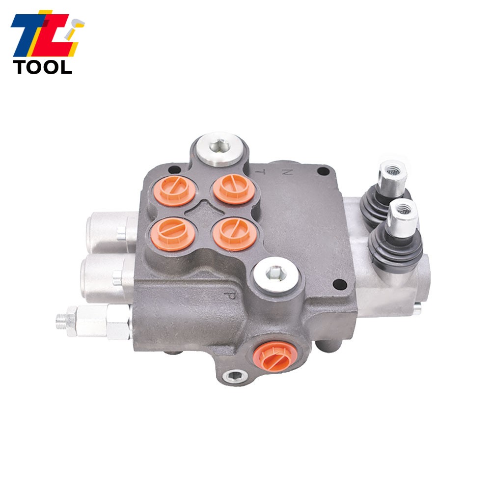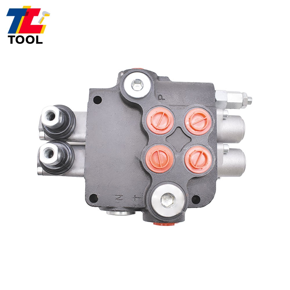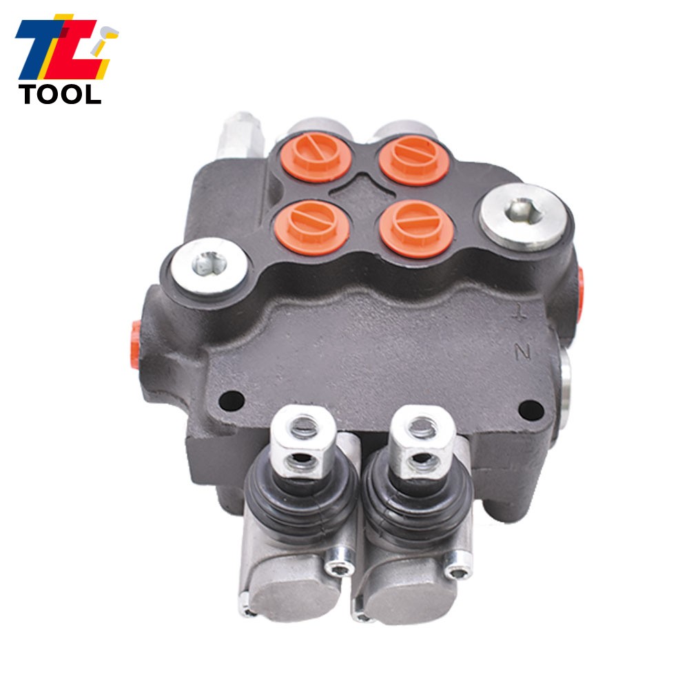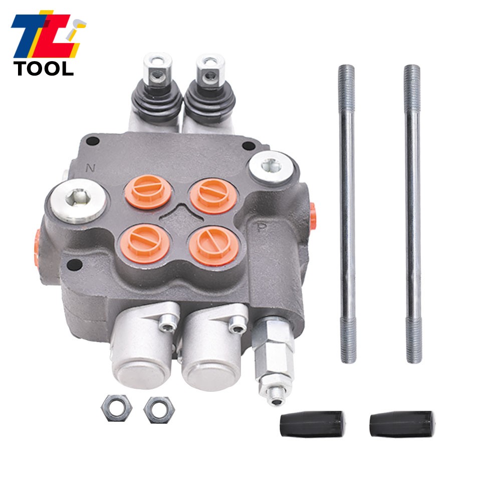 The compact design of the 2-spool hydraulic control valve can manage and direct hydraulic oil flow in between hydraulic pumps and hydraulic cylinders, motors, tanks, etc. The adjustable release valve and durable cast iron body are easy to use. It has 4 way 3 positions, and the spring center to neutral all spools.