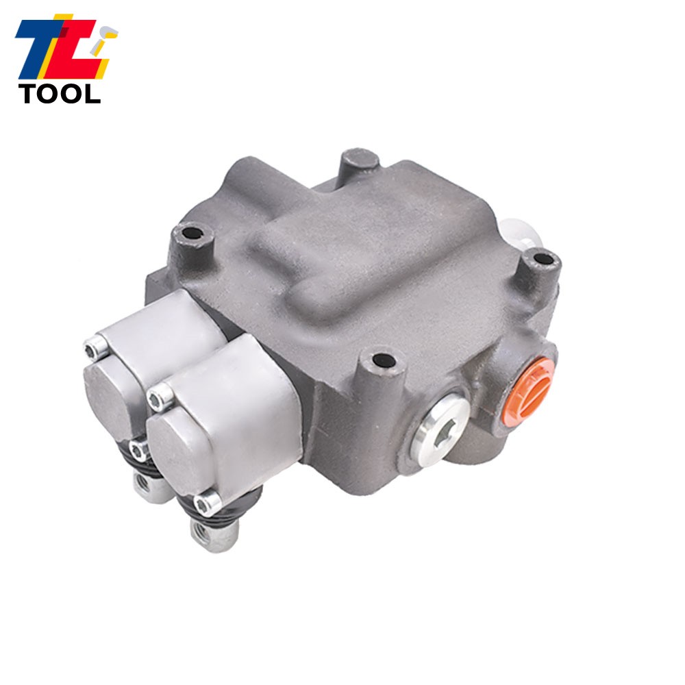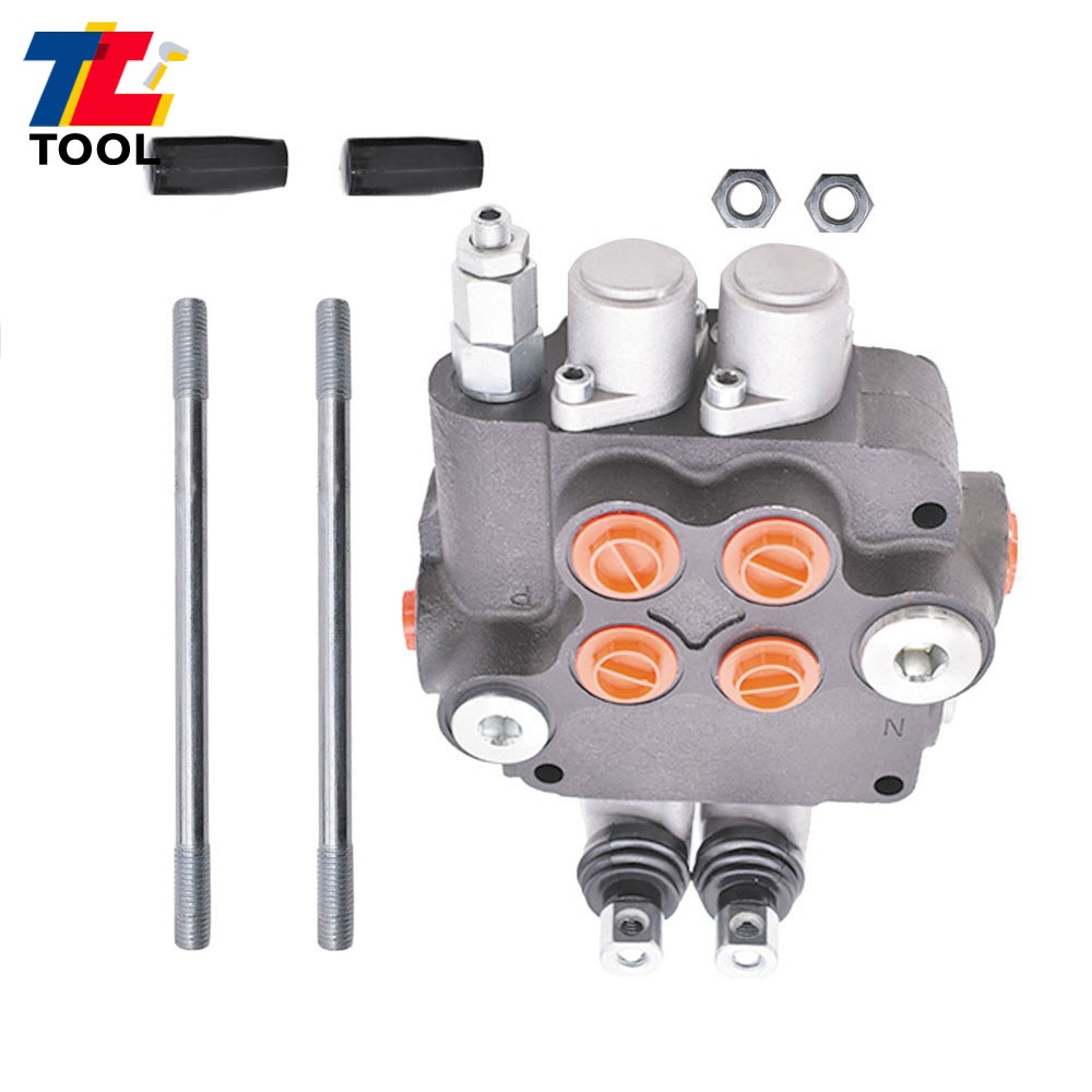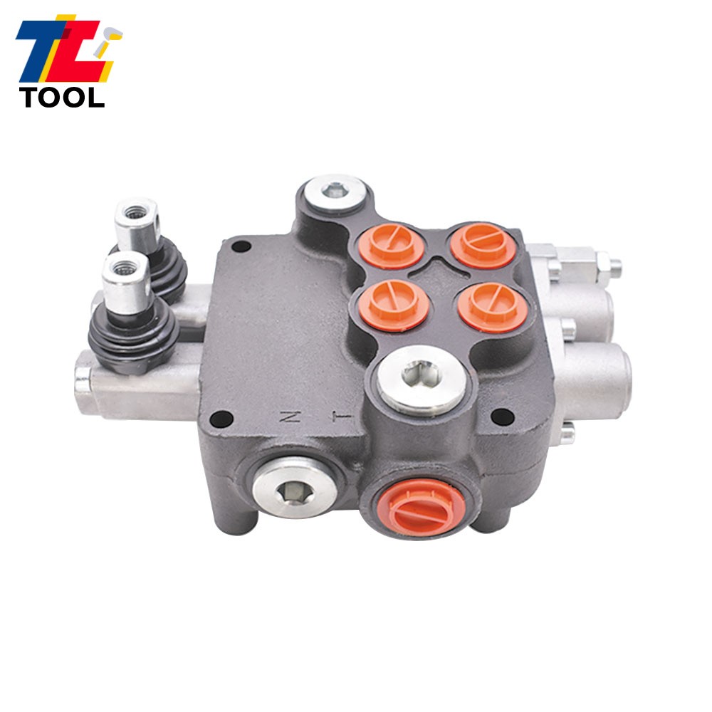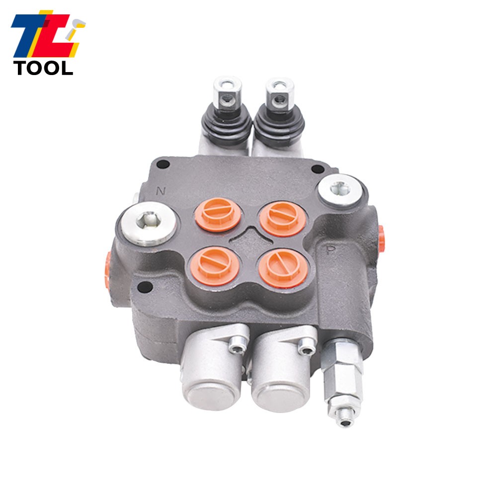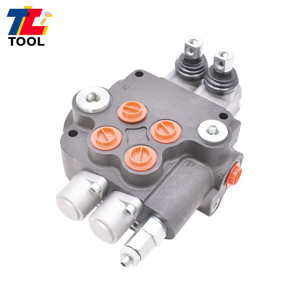 The compact design of the 2-spool hydraulic control valve can manage and direct hydraulic oil flow in between hydraulic pumps and hydraulic cylinders, motors, tanks, etc. The adjustable release valve and durable cast iron body are easy to use. It has 4 way 3 positions, and the spring center to neutral all spools.