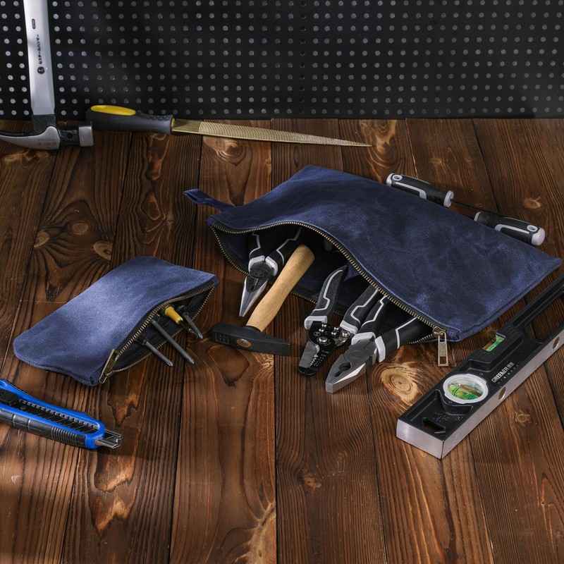 Tool Pouch with Smooth Zipper, Heavy Duty 16oz Waxed Canvas Tool Bag, One-piece Waterproof Tool Bags,12.5X8.4 Inches (4 Pack)