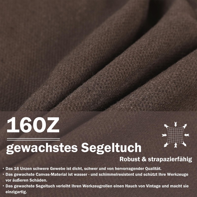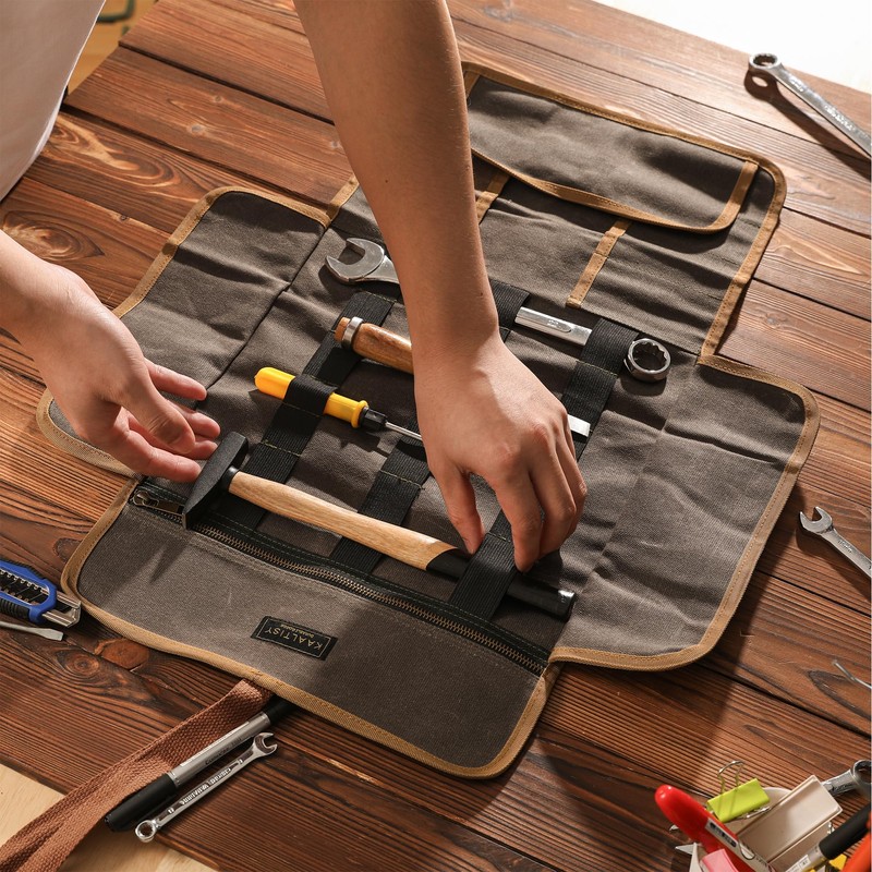 - Carrying the product: 3 side flaps prevent tools from slipping, canvas straps make it easy to open and close the tool roll