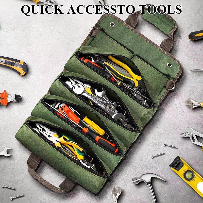 - Perfect Gift Choice: This Tool Bag Organizer is an ideal assistant for professionals such as carpenters, electricians, plumbers, repairmen, and craftsmen. If you're struggling to choose a gift for your husband, father, family member, or friend, this tool roll bag would be an excellent choice. It's not only suitable for home use but also perfect for camping, traveling, or as a motorcycle tool roll.
