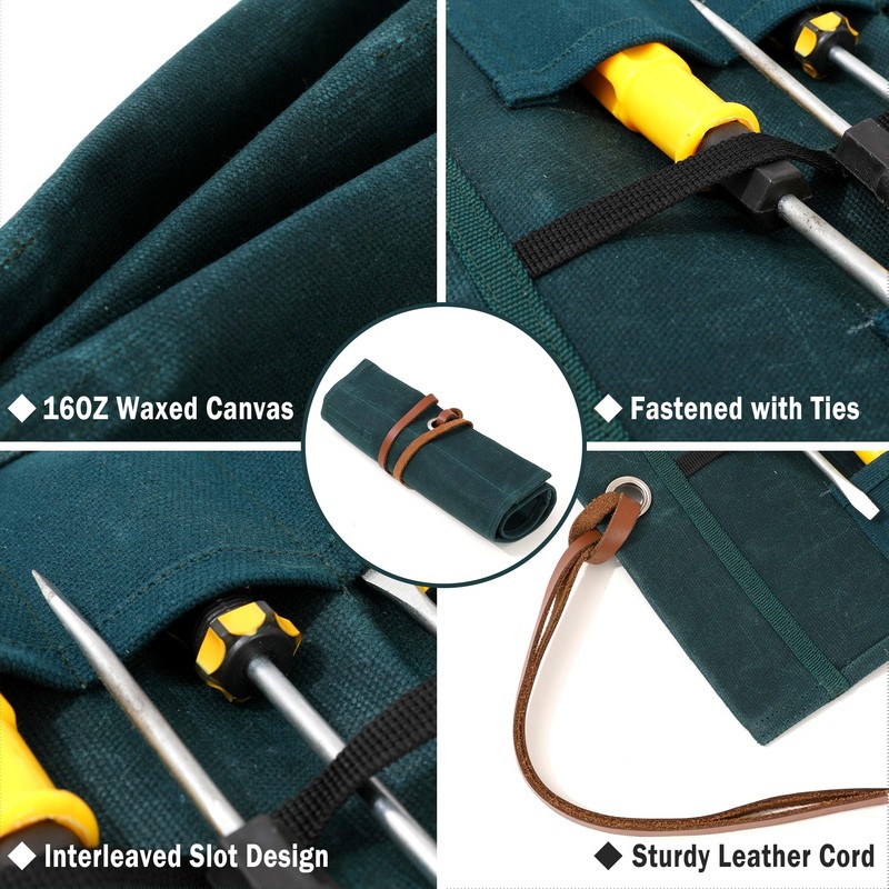 - MATERIAL: Heavy duty 16 oz waxed canvas is sustainable and hardwearing. To better protect the tools, we use hard fabric, there are creases on it is a normal phenomenon