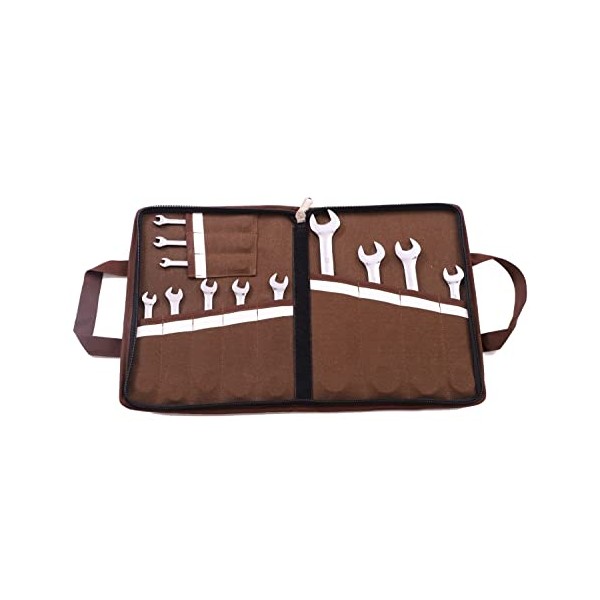 - TOP QUALITY: This Cotton Strong & Lightweight Wrench Roll With 12 tool slots, you can store a variety of small to medium sized hand tools, Well built with strong fixing Hook and Loop FastenerClosure System, for different types tool accesorries, Extremely durable material of waterproof waxed canvas fabric.