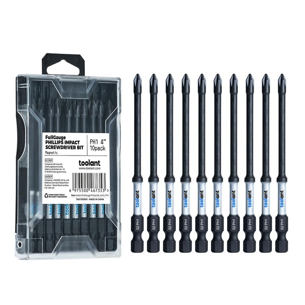 - 【No Cam Out】toolant 4inch impact phillips bit#1 adopts a anti-slip tips design, providing a larger contact area with the screw. Compared to other brand, it effectively increases the fit precision of PH screws by 30%, reducing the risk of slipping out.