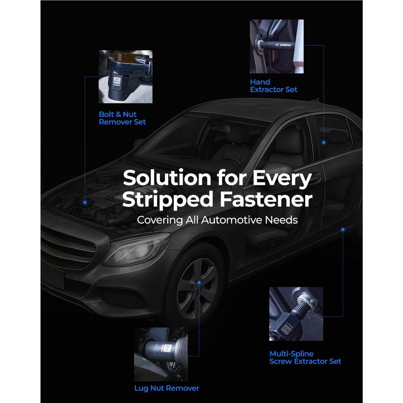 - SOLUTION FOR EVERY STRIPPED BOLT - our comprehensive fastener extraction kits provide full-spectrum solutions for damaged fasteners in automotive repair scenarios. The system covers all required kit configurations and sizes, ensuring 100% problem resolution for both DIY enthusiasts and professional technicians;