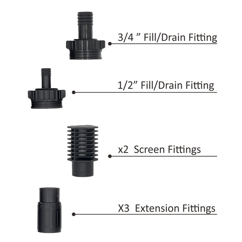 - PACKAG KIT : Ebb & Flow Kit Fill & Drain Fitting comes sealed in a bag,1/2" Tub outlet fitting(1 piece), 3/4" Tub outlet fitting(1 piece), Screen fitting(2 piece) and outlet extension fitting(3 piece)。