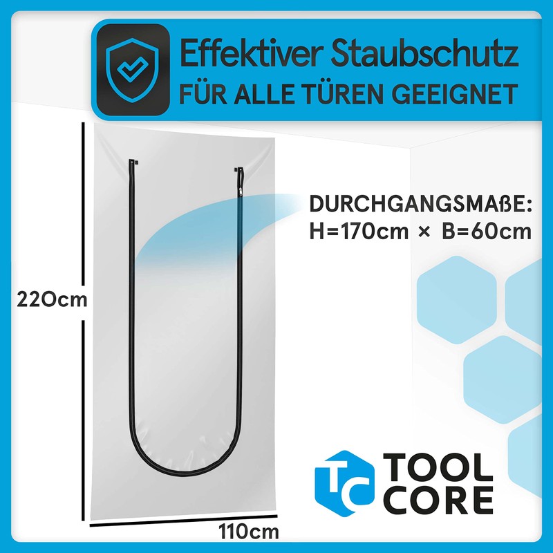 TOOLCORE TOOLCORE? Staubschutztr mit Rei?verschluss 1,1x2,2m [Extra Stark] Bautre mit Rei?verschluss inkl. Edelstahl Zipper + Easy Comfort Aufh?nger - Staubschutzwand, Staubtr, Folientr