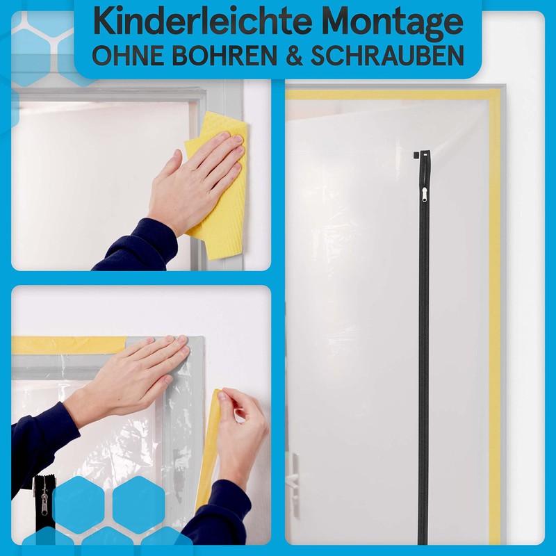 - ? ???????????????? & ???????????????? ?????????????? : Dabei sparen Sie sich Zeit und Mhe. Kinderleichte Anwendung fr eine Staubtr bzw. Bautr mit Rei?verschluss ohne l?stiges Bohren und Schrauben.