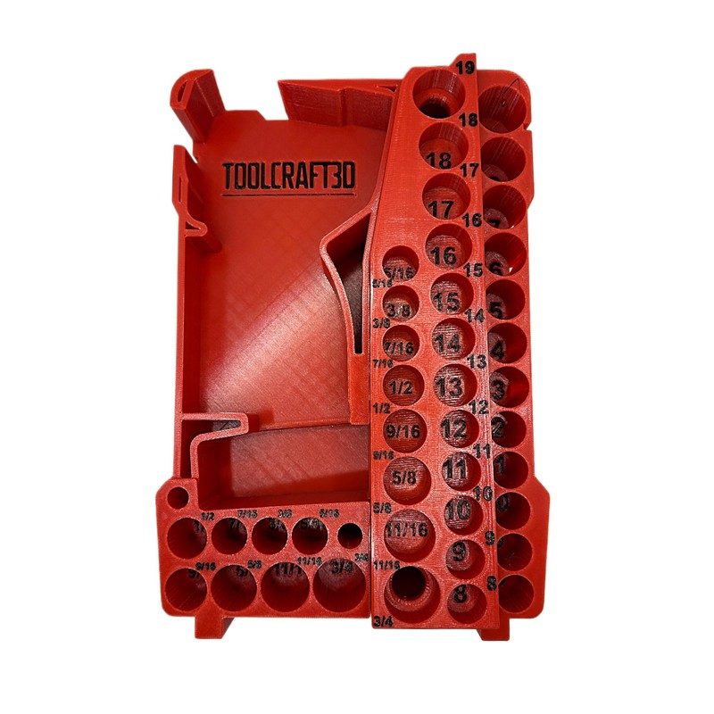 Designed for Gen2 M12 Stubby 3/8" Impact (2562-20) plus the FULL 43 Piece Milwaukee Shockwave Impact Socket Set (49-66-7009). 3D printed from PETG material for higher strength and temperature resistance. Note that this is NOT designed for the protective boot accessory.