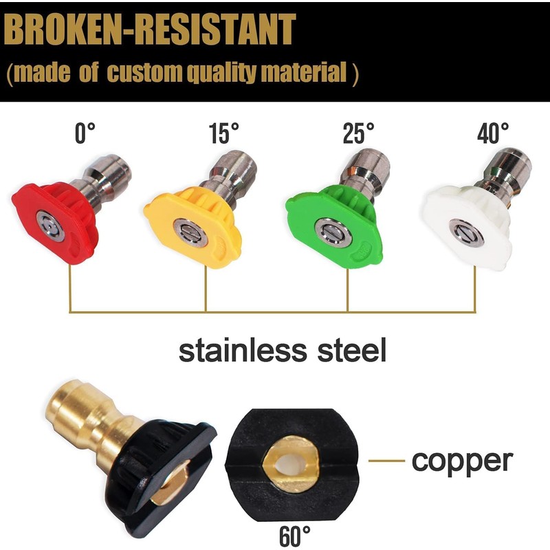 - 【High-Quality Craftsmanship】: Our power washer gun are made with solid brass and metal pole connector and spool, which guarantees durability, rust resistance, and minimizes the risk of leakage from loose metal joints.
