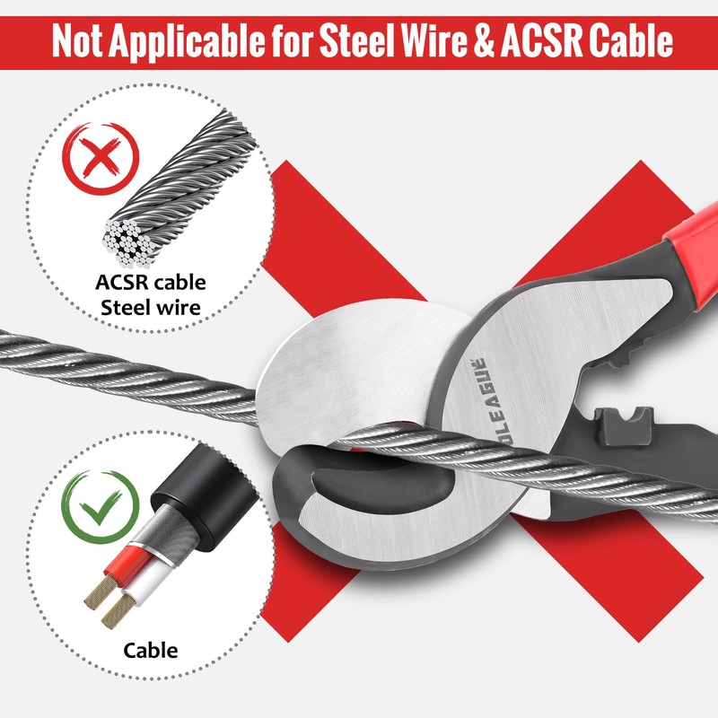- 【Please Note】:The PVC dipped handle is not insulated, please do not use it to cut the live wires.These cable cutters are not suitable for steel wire and ACSR.