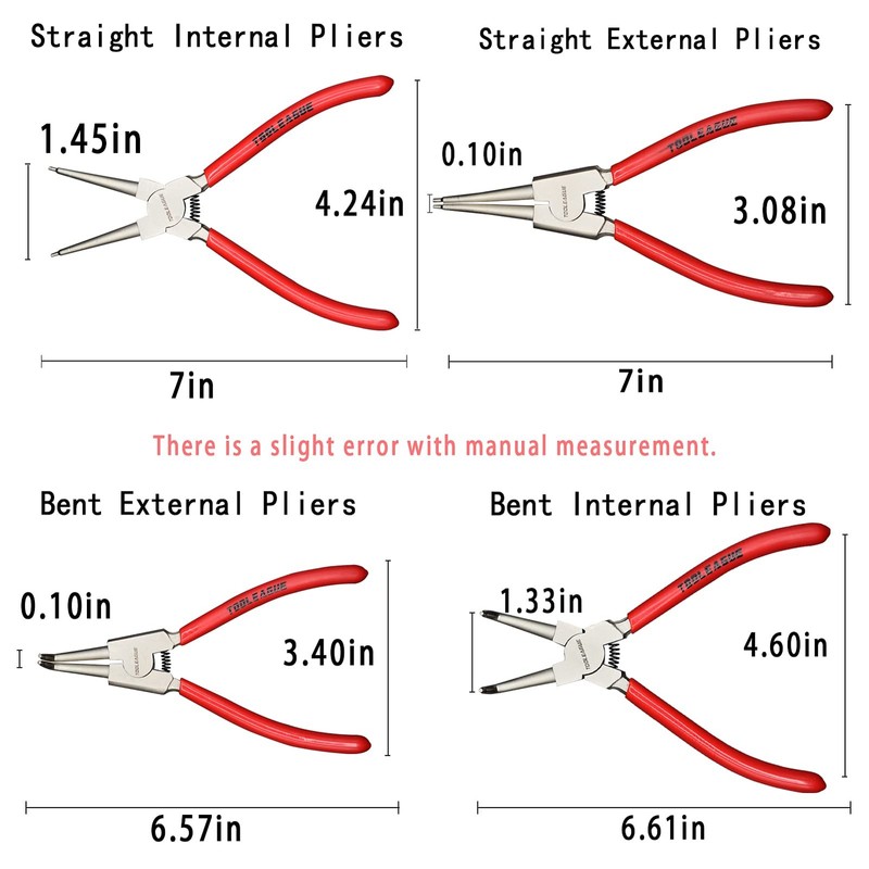 - HIGH QUALITY: TOOLEAGUE circlip pliers with a forged and hardened CR-V steel construction, each circlip plier is nickel plated for increased corrosion resistance. The high-quality quality guarantees the repeated use and long-term use of the product.