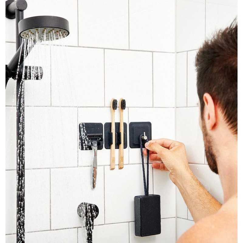 - Cleverly sticks to any shiny surface with Tooletries' patent-pending super-grip-silicone technology.