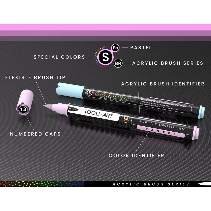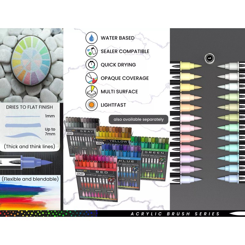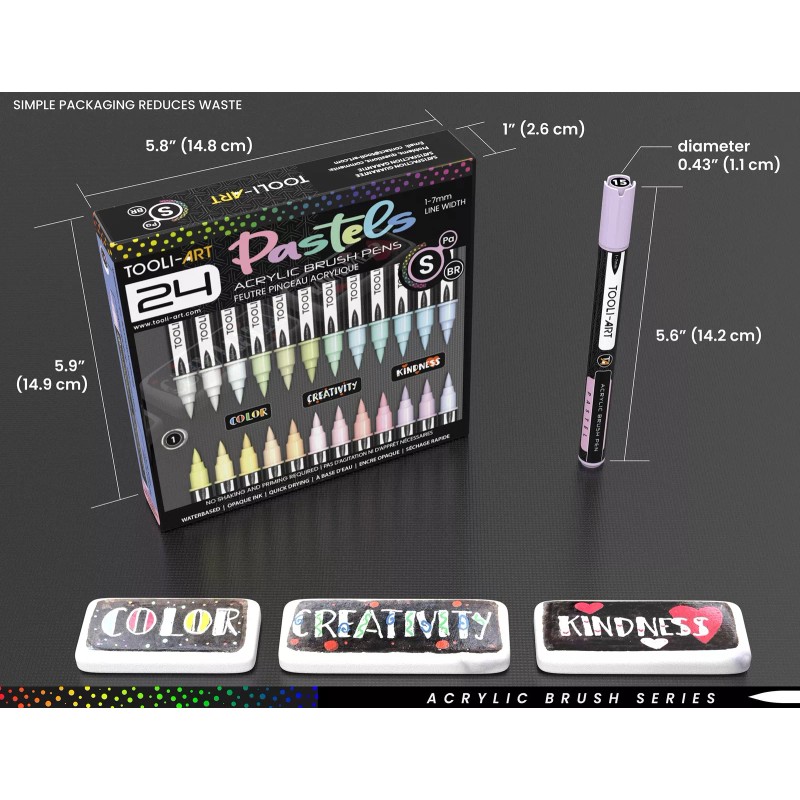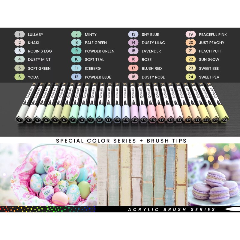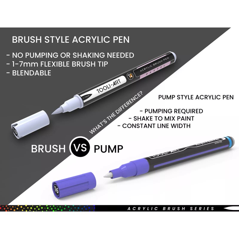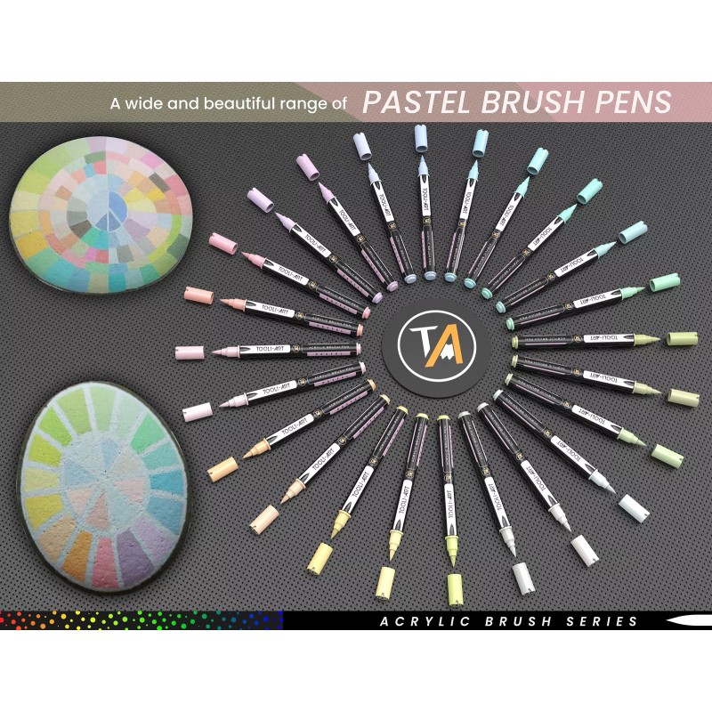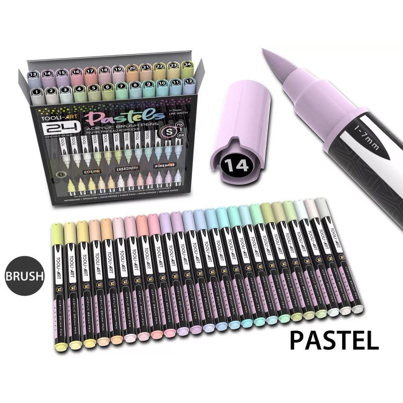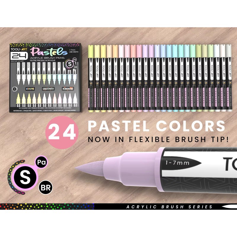 TOOLI-ART 24 Flexible Brush Tip Acrylic Paint Pens Markers Set 1-7mm(PASTEL)