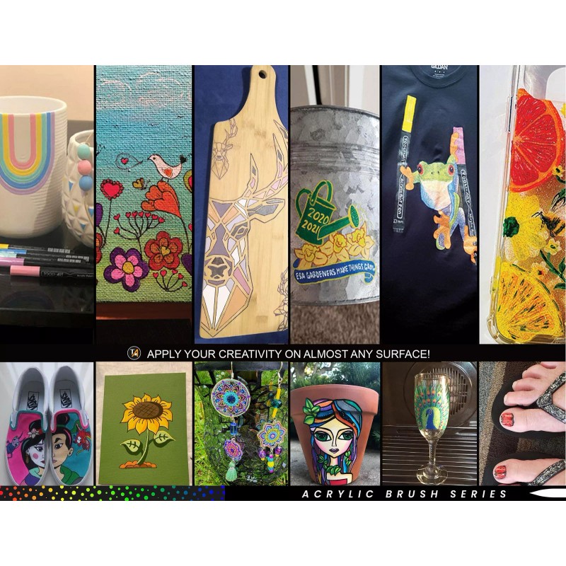 ✅ FLEXIBLE BRUSH TIP - The pens are ready to paint without having to shake and prime the tips like traditional paint pens. The flexible brush tip makes color blending easier and can vary from a thin 1mm up to a bold 7mm line width, depending on the pressure applied. Paint pens are great for avoiding the mess that typically comes with cleaning brushes and pouring paint and are easy to travel with.