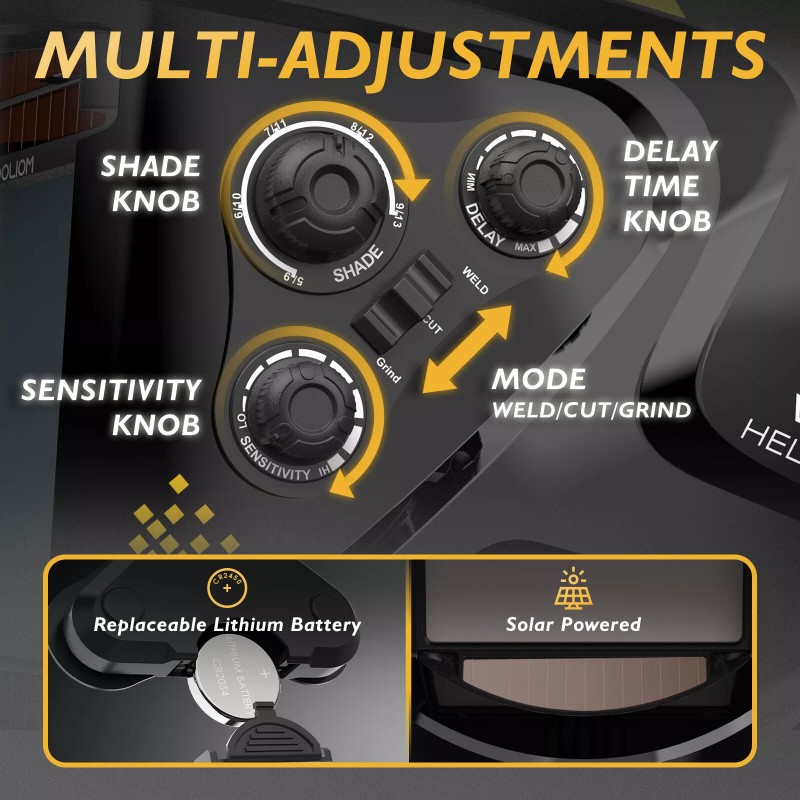 TOOLIOM Welding helmets pursue high cost performance. It has the Auto Darkening, True Color Technology, Easy To Operate, Light-Weight shell, etc., to achieve the real value of the welding helmet.