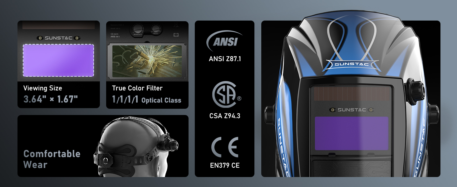 TOOLIOM Optical Clarity True Color Auto Darkening Welding Hood/ Helmet Wide Shade 4/9-13