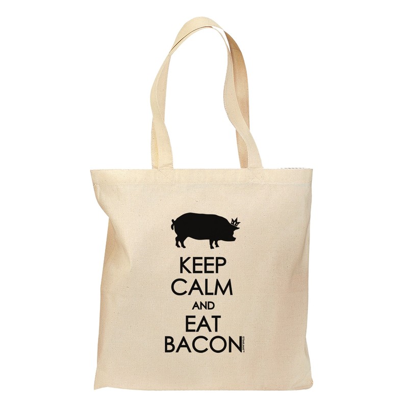 TOOLOUD Keep Calm and Eat Bacon Grocery Tote Bag - Natural