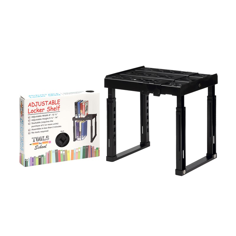 Tools for School Adjustable Locker Shelf - Strong ABS Plastic - Width Adjusts from 8"-12.5" & Height Adjusts from 9 3/4"-14" - Patented Design - Beware of Cheap IMITATIONS - (Black)