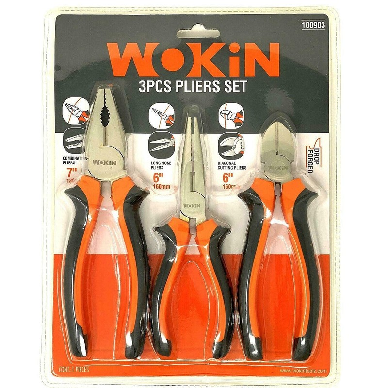 TOOLSTEK WOKIN 3pcs Pliers Set Heavy Duty 6'' Long Nose 6'' Diagonal Cutter Plier 7'' Insulated Combination Pliers Soft Grip Handle Tools Combination Cable Wire Cutting Pliers, Red