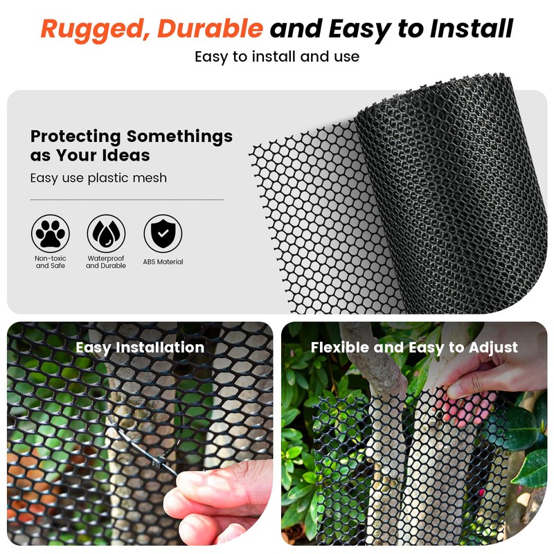 - DIY Friendly: Easy to cut and install with standard tools and zip ties, no professional skills required. You can effortlessly DIY a pet fence, a deer fence netting, a plant climbing frame, a boundary net for a small sports field, or even imaginative thoughts like outdoor curtains or art installations, making your space truly one-of-a-kind.