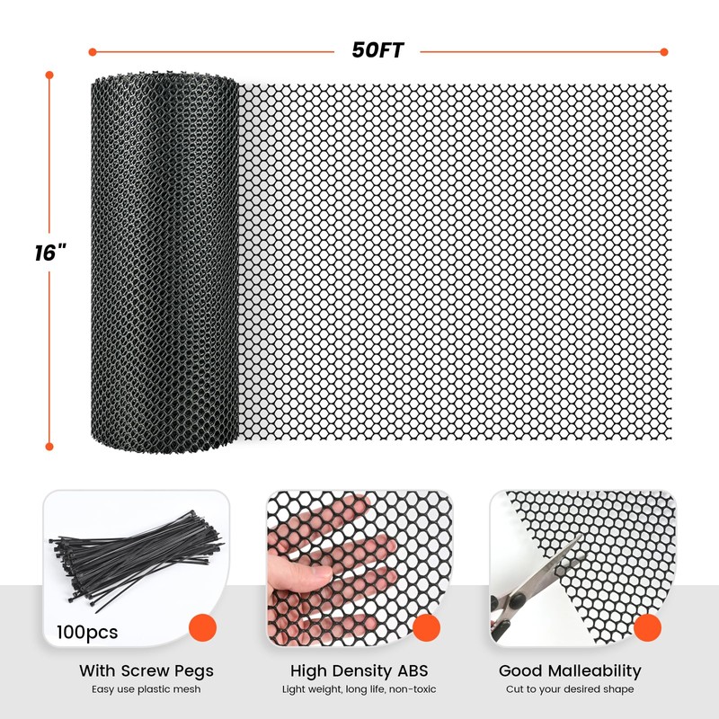 Toolterritary 16IN x 50FT Plastic Chicken Wire Mesh, Chicken Wire for Floral Arrangements, Chicken Wire Mesh for Crafts with 100 Pcs Zip Ties, Mesh Fence for Dogs, Deers, Poultry