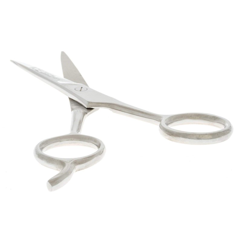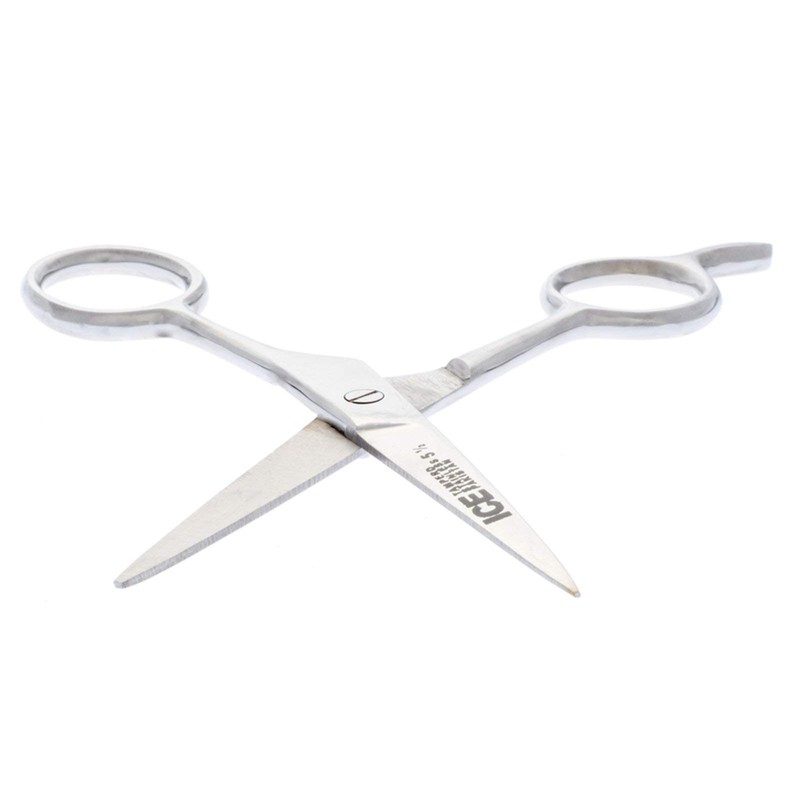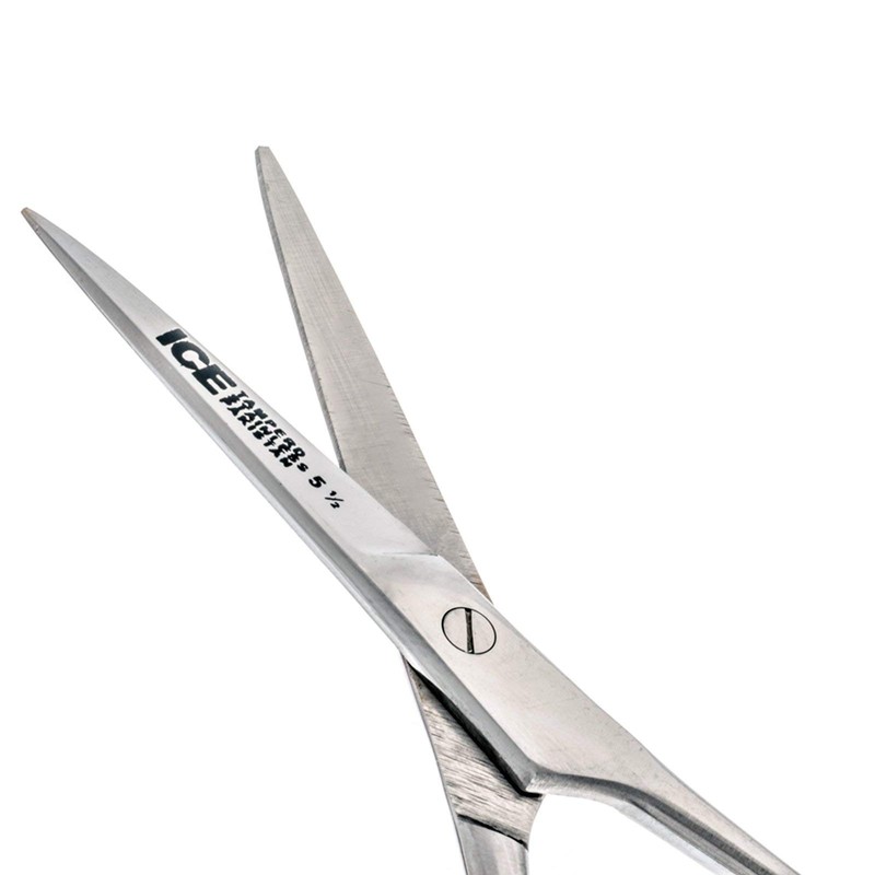 - COMFORTABLE DESIGN - Scissors come with an ergonomic finger rest to protect your hand during cutting. Measures 5.5" in length, ideal size for barber shops, salons, and home bathroom storage.