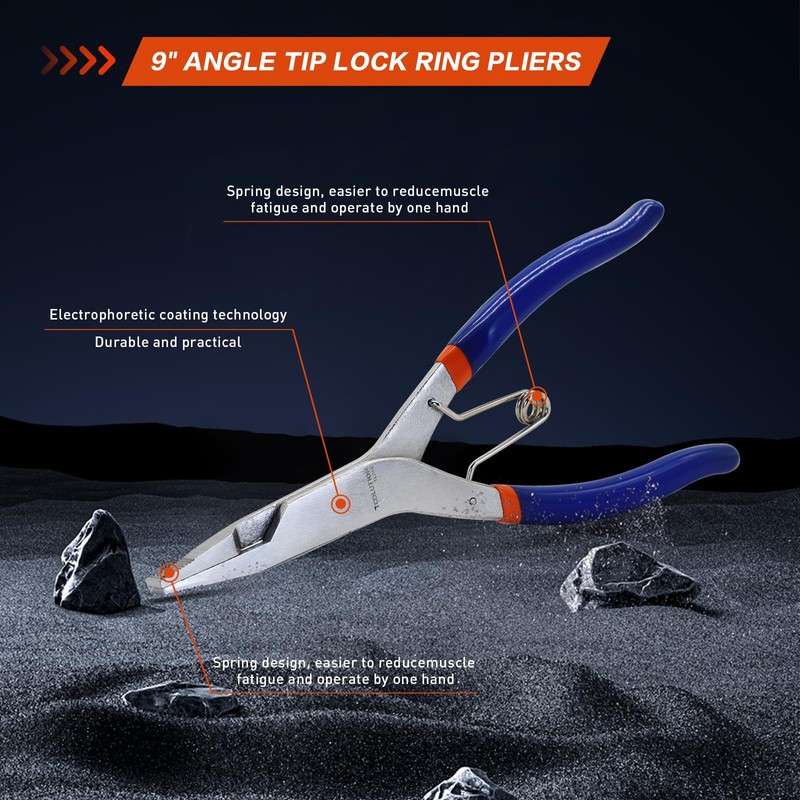TOOLUTION 9 Inch Angle Tip Lock Ring Pliers, Snap Ring Pliers Heavy Duty with Spring Design, Reverse Pliers for Automotive Transmission, Retaining Rings, Transmission Tools