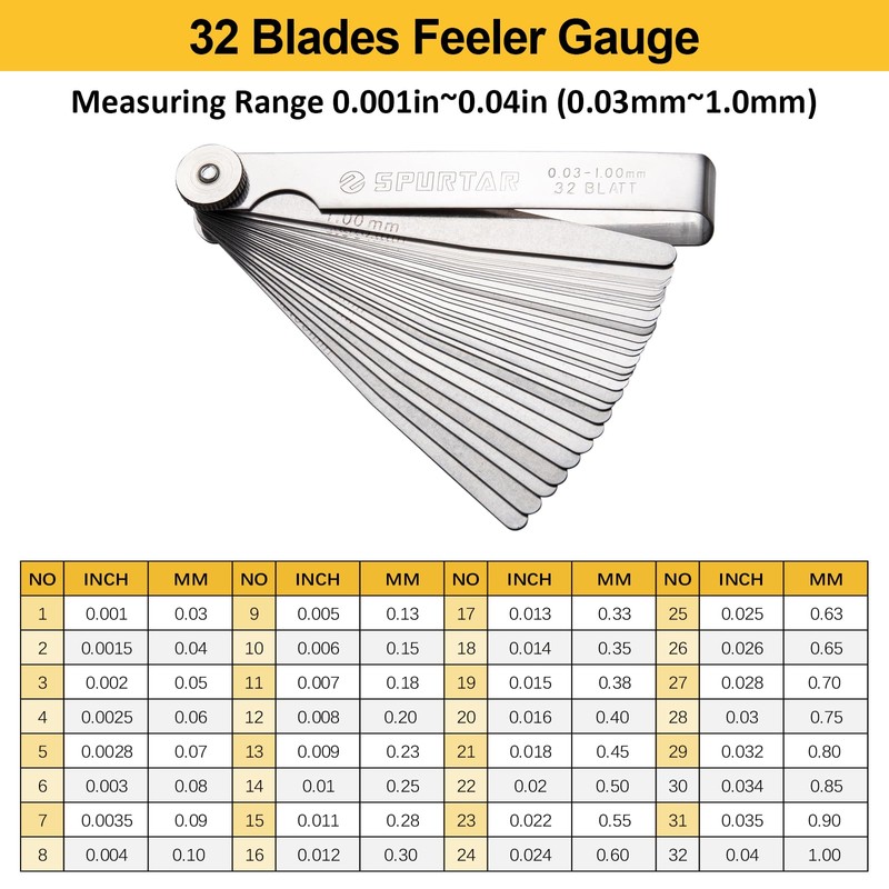 Toolwiz Spark Plug Gap Tool with 32 Blade Steel Feeler Gauge, Universal Gapping Tool for Most 10mm 12mm 14mm 16mm Thread Spark Plugs, Red