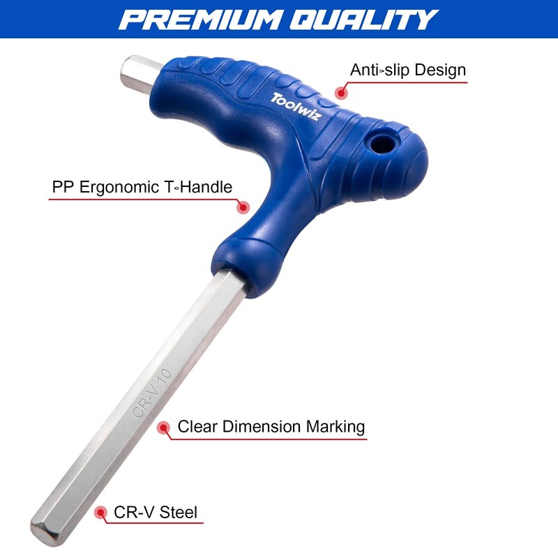 - Chamfered Edge for Best Performance: Each Toolwiz Allan wrench in this T-handle Allen wrench set features a precision-engineered chamfered edge, ensuring smooth and effortless insertion into hexagonal socket screws, enhancing efficiency and reducing the risk of stripping or damaging fasteners