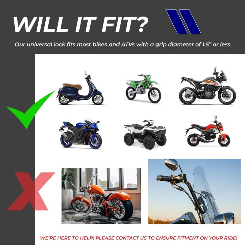 - 🏍️ RELIABLE ANTI-THEFT PROTECTION – Safeguard your Motorcycle, Street Bike, Crotch Rocket, ATV, Moped, 4 Wheeler, or Dirtbike from theft with our Heavy Duty Grip Lock. Ensure your valuable ride is secure at all times, even during winter storage.
