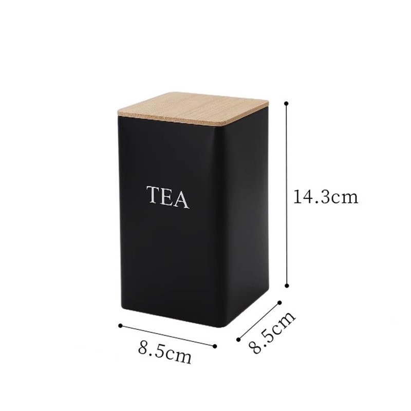 Toolzia Tea Coffee Sugar Canisters, 3 Pack Tea and Coffee Sugar Canister Set With Bamboo Lids Stackable Kitchen Storage Easy To Open Airtight Food Storage Tin (Black)