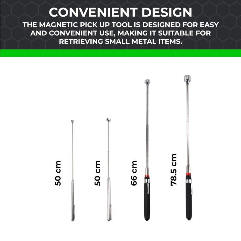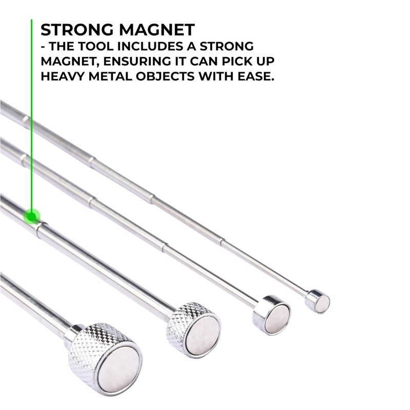 • The extendable magnetic pickup tool is perfect for mechanics and other tools users. It makes it easy to pick up dropped screws, nails, and other small metal objects.