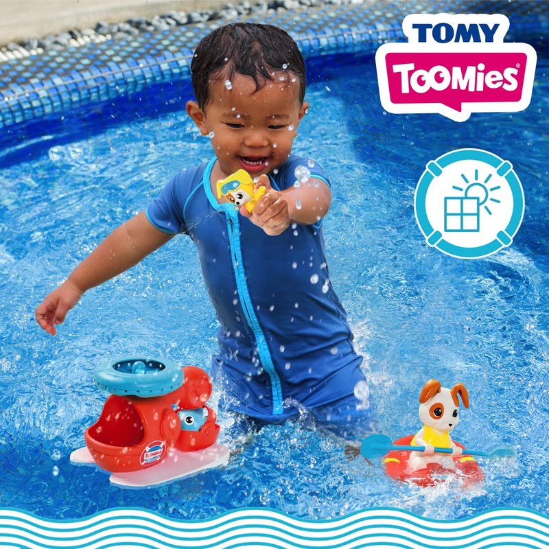 Toomies E73307C Tomy Sea Set Floating Helicopter and Rescue Raft Bundle – Water Spinning Rotor – Pilot Squirter – Baby Bath Toy & Pourer – Suitable from 12 Months