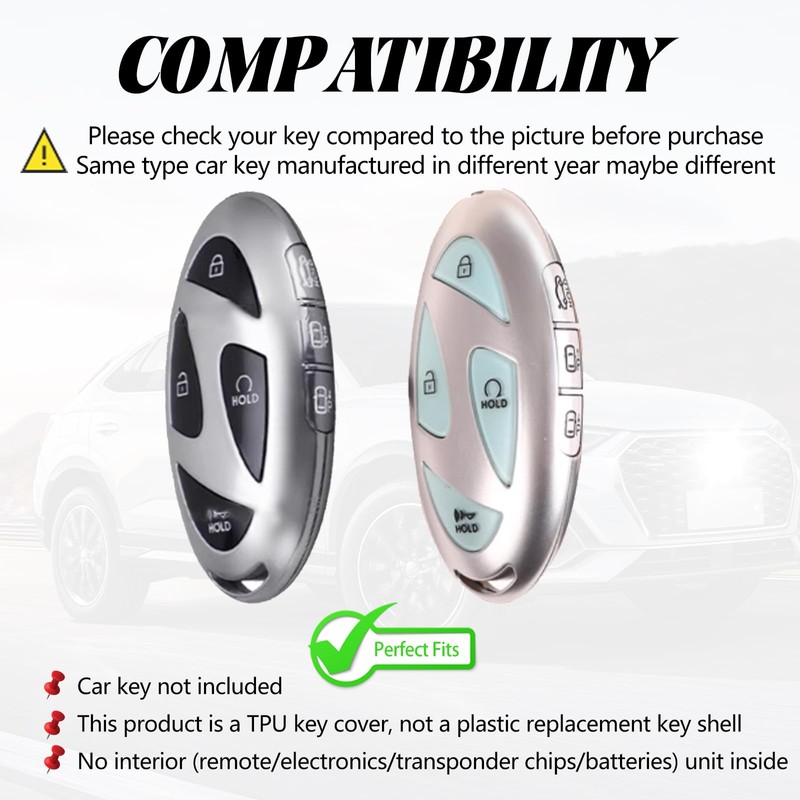 - 【Note】⚠️The car key case does not include the car key. ⚠️This product is a TPU key fob cover, not a plastic replacement key shell. ⚠️No interior (remote/electronics/transponder chips/batteries) unit inside the key fob case. ⚠️Even if the type is the same, car key may be different depending on the manufacturing year.
