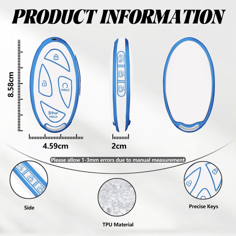 - 【Note】⚠️The car key case does not include the car key. ⚠️This product is a TPU key fob cover, not a plastic replacement key shell. ⚠️No interior (remote/electronics/transponder chips/batteries) unit inside the key fob case. ⚠️Even if the type is the same, car key may be different depending on the manufacturing year.